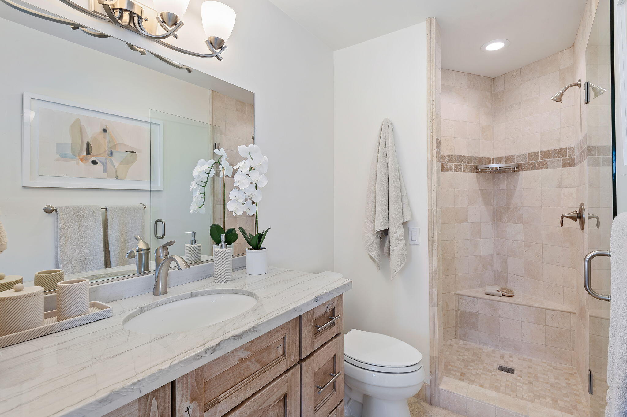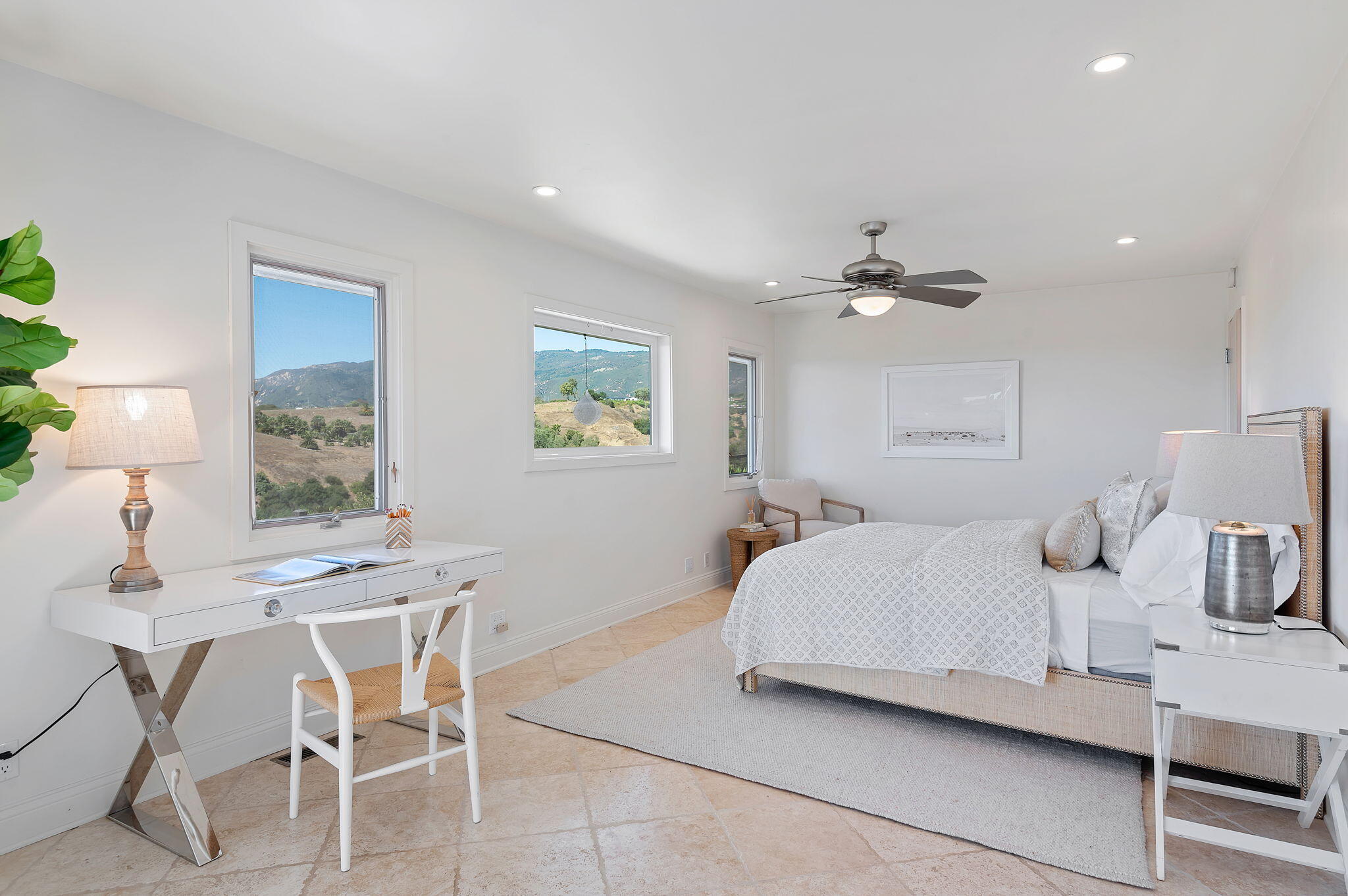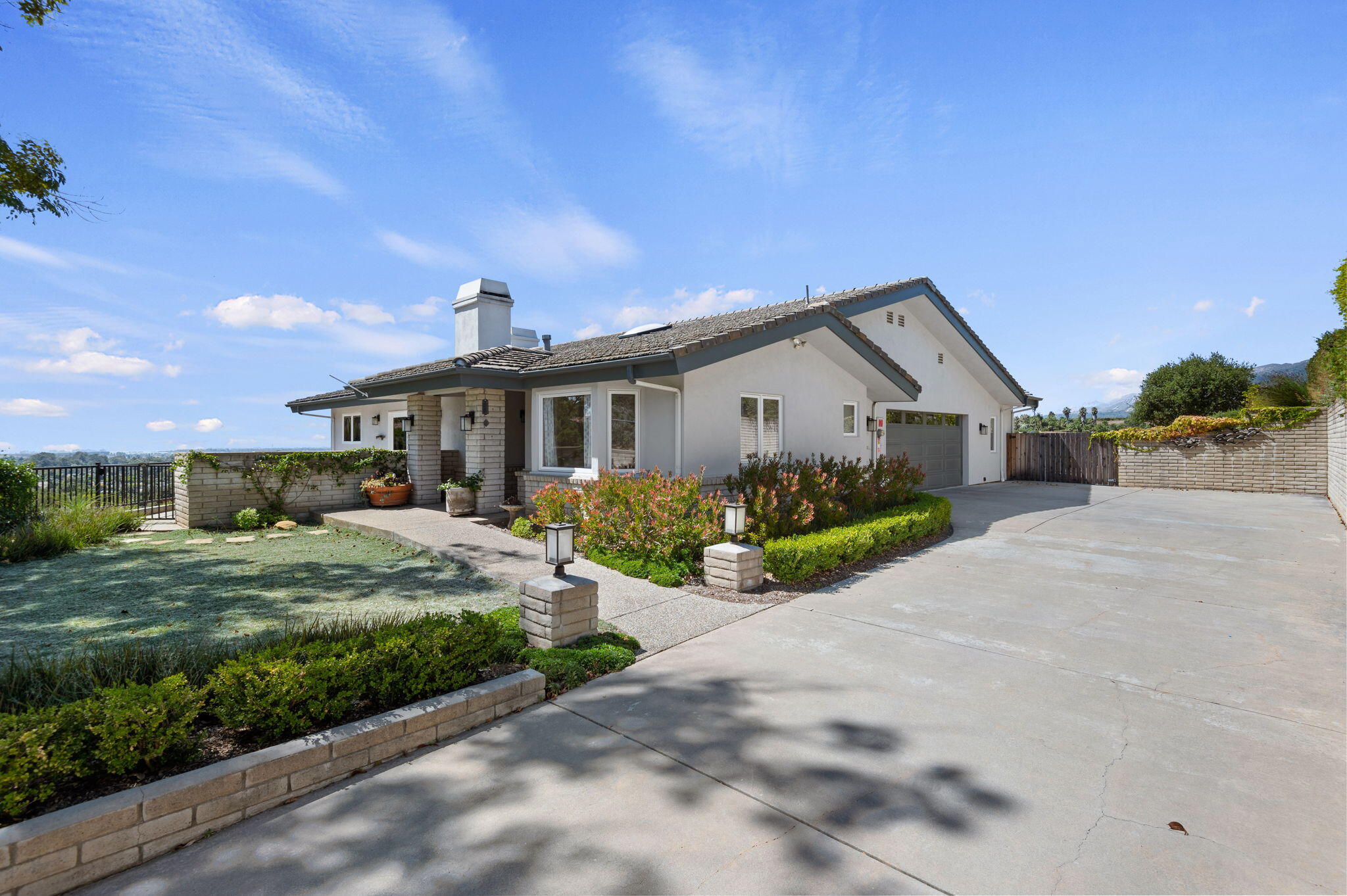 Move right into your dream view home! This luxurious single-level residence boasts over 2,700 sf with 3 bedrooms and 3.5 baths, offering stunning ocean, valley, and mountain views from most rms The grand living room has soaring vaulted ceilings, a cozy fireplace, and leads to a spacious view deck. The family room also features a fireplace and is conveniently adjacent to the gourmet kitchen that dazzles with granite countertops, high-end stainless appliances, and ocean views. Each bedroom includes a private bath, with the primary suite featuring a walk-in closet and window seat. Set on 1.2 acres in Park Highlands, this home has modern comforts like solar power,Tesla power wall, central A/C, gas heating, and a two-car garage. Enjoy a relaxed, luxurious lifestyle in this exceptional property