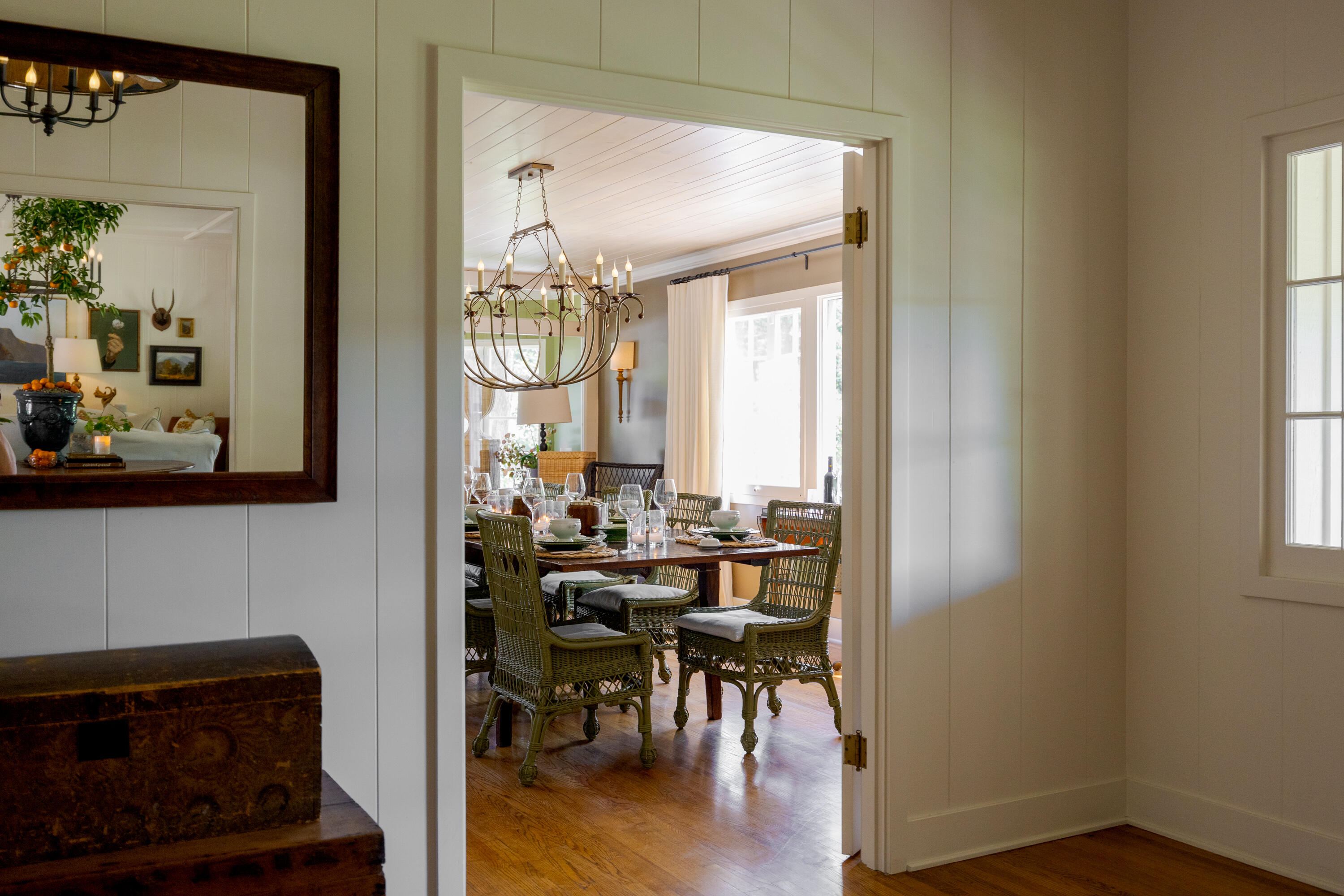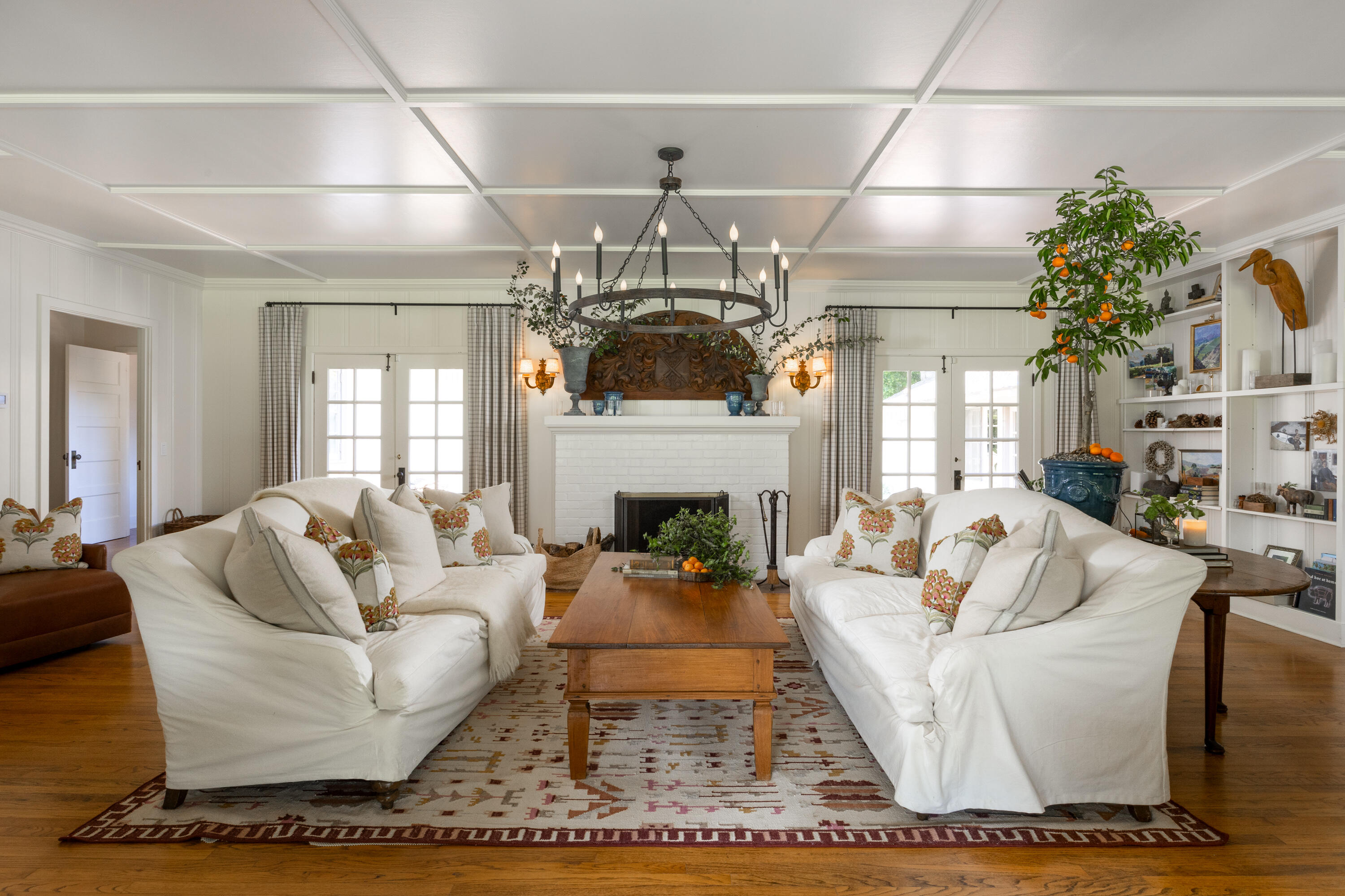 The 1930s farmhouse is nestled amid mature trees and a seasonal creek. This classic California ranch house exudes warmth and charm... featuring a sun-filled living room with a large wood-burning fireplace and a marvelous screened sunroom. Over time, the home expanded to include 6 bedrooms, centered around a kitchen with a dual-sided fireplace and French doors opening to the patio and BBQ areas. A butler's pantry leads to a formal dining room and an additional screened porch, perfect for larger gatherings. The home retains much of its original charm, including hardwood floors, brick fireplaces, tongue-and-groove ceilings, and French doors, while blending old-world charm with modern comforts. The house is complete with a 2-car garage, 2 additional covered car spaces, and an office.