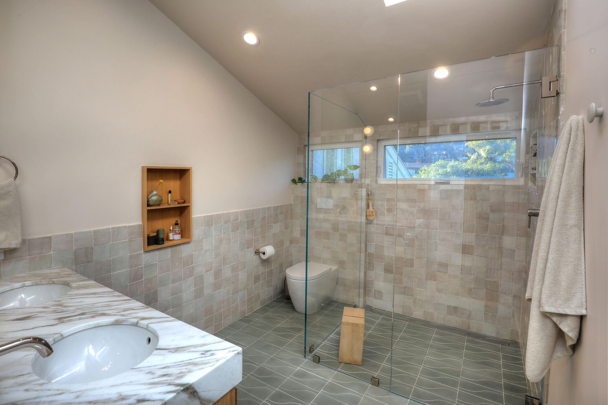 Nestled into the lush trees of the Mesa neighborhood, this beautifully updated four-bedroom, three-bathroom home offers a rare combination of vaulted ceilings, large windows and sun-splashed interiors. Tastefully and extensively remodeled with premium finishes, this home exudes an easy elegance end modernity.